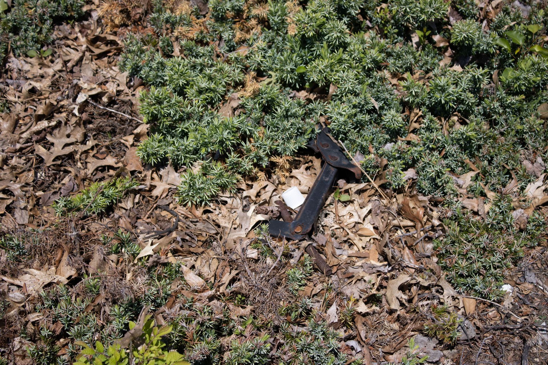 A tossed aside, rusty carjack. A forlorn memory of someone's terrible day.